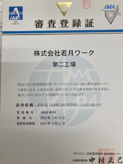 今後も医療機器分野における高品質な製品・サービスの提供に努め、より一層の信頼性向上に邁進してまいります。