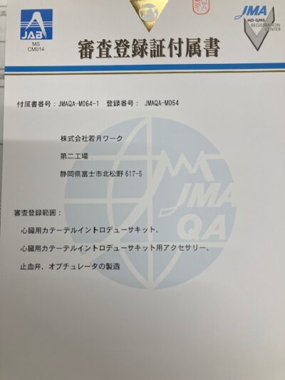 登録範囲:心臓用カテーテルイントロデューサキット、心臓用カテーテルイントロデューサキット用アクセサリー、 止血弁、オブチュレータの製造